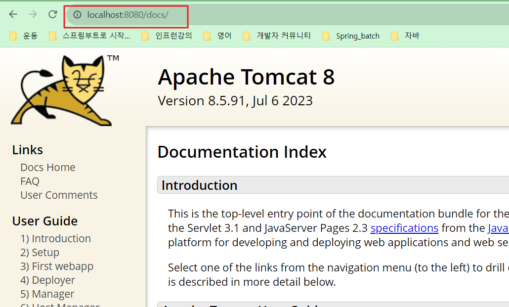 apache-tomcat-8.5.91-windows-x64 (1)\apache-tomcat-8.5.91\webapps\ROOT 하위에 있는 index.jsp가 실행된다.